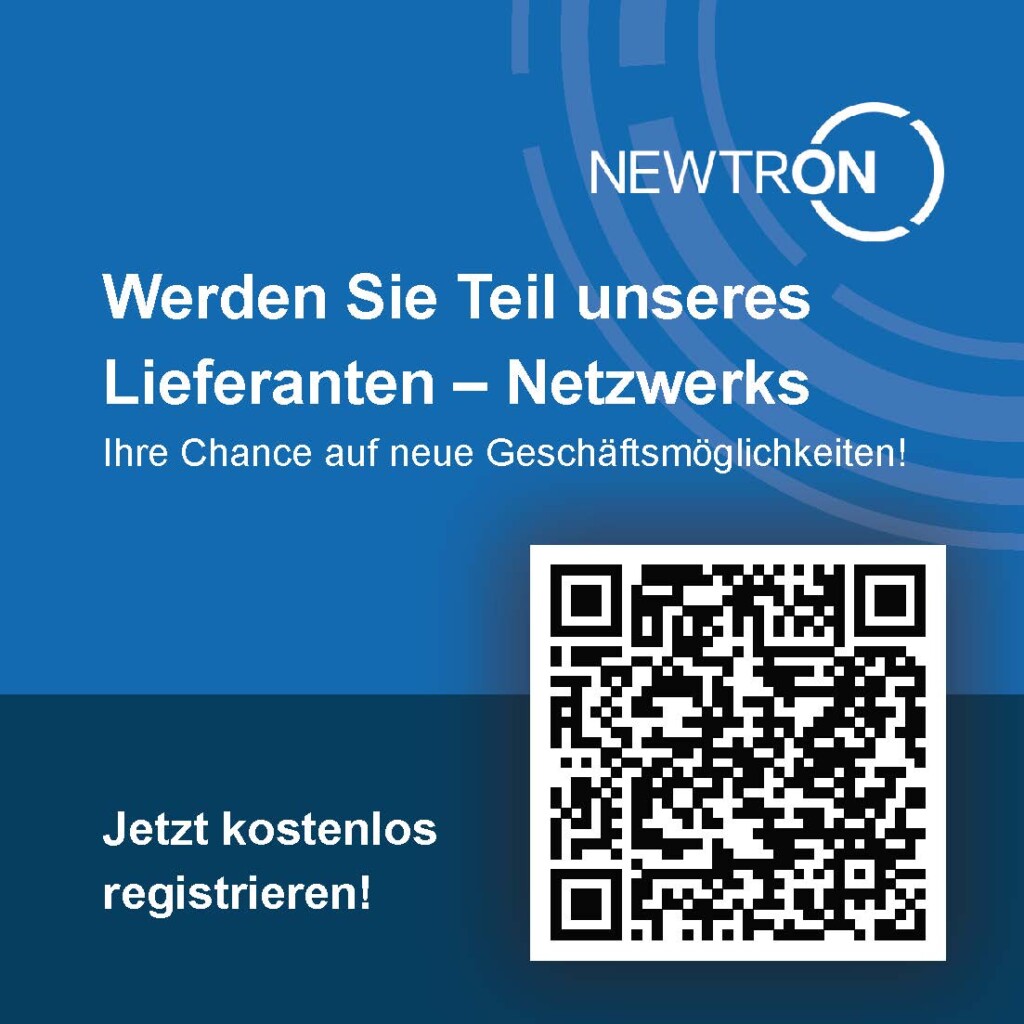 Registrieren Sie sich kostenfrei im Lieferantennetzwerk von Newtron und erhalten Sie Zugang zu Ausschreibungen und Anfragen, die im Einkauf aktuell vorbereitet werden. Weitere Details zur Zusammenarbeit, zum Einstieg und zu den Funktionen finden Sie in der Lieferantenbroschüre von Newtron. Fordern sie diese Broschüre gern unter marketing@newtron.de an.